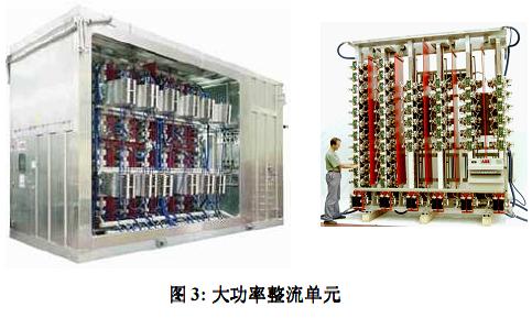 在整流應(yīng)用中,由于沒有再生負(fù)載,額定電壓選擇依據(jù)整流器輸入線電壓。如果與3英寸或4英寸二極管或晶閘管配合使用,可以形成的整流器輸出為直流2100V,將可允許在一條生產(chǎn)線上有440只電解槽串聯(lián),這等效于每年39萬噸鋁的生產(chǎn)能力。