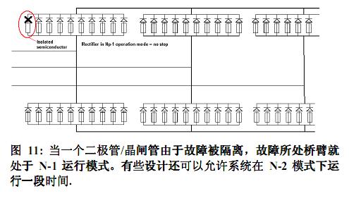 整流器中的半導(dǎo)體和快熔的配合需要仔細(xì)考慮。一個(gè)考慮周全的熔斷器保護(hù)方案基本不存在半導(dǎo)體爆炸的可能。與之相反,不當(dāng)?shù)南到y(tǒng)設(shè)計(jì)將會(huì)導(dǎo)致燃弧和起火、損壞整個(gè)整流器單元、以及操作人員的人身傷害。按照N-1模式設(shè)計(jì)系統(tǒng)可以保護(hù)用戶免受生產(chǎn)線部分或全部停頓帶來的損失。因此,在大功率整流應(yīng)用中,都是基于N-1模式的連續(xù)滿載運(yùn)行。在某些應(yīng)用中,客戶甚至要求按N-2-或更多來進(jìn)行設(shè)計(jì),這些都要加以考慮。如果整流器在N-x模式下運(yùn)行了過長的時(shí)間,而整流器本不是按照N-x模式來設(shè)計(jì)的,那么結(jié)果就是故障熔斷器所在橋臂的所有其他熔斷器也受到了傷害。