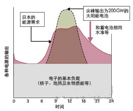與市電同價(jià)的太陽(yáng)能很可能加快引進(jìn)在工廠和其他企業(yè)設(shè)施中,使它得以符合或超過(guò)日本政府的“2020年以前28GW,2030年以前53GW”的目標(biāo)。日本新能源產(chǎn)業(yè)技術(shù)綜合開(kāi)發(fā)機(jī)構(gòu)(NEDO)推出的太陽(yáng)能電池采用預(yù)測(cè)(如出版PV2030)中預(yù)估在2030年前將安裝高達(dá)201.8GW容量。此數(shù)字假設(shè)最大的采用率,每隔一間工廠20%的屋頂面積及所有房屋的1/3都裝有太陽(yáng)能電池。