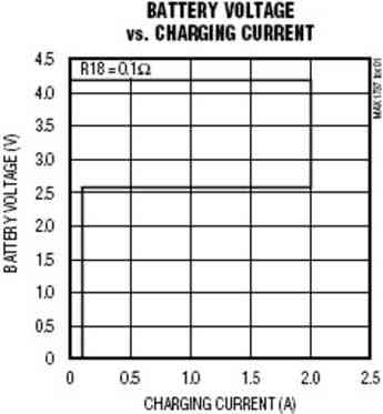 圖1.MAX1737的V-I曲線是Li+電池充電器的標(biāo)準(zhǔn)特性曲線