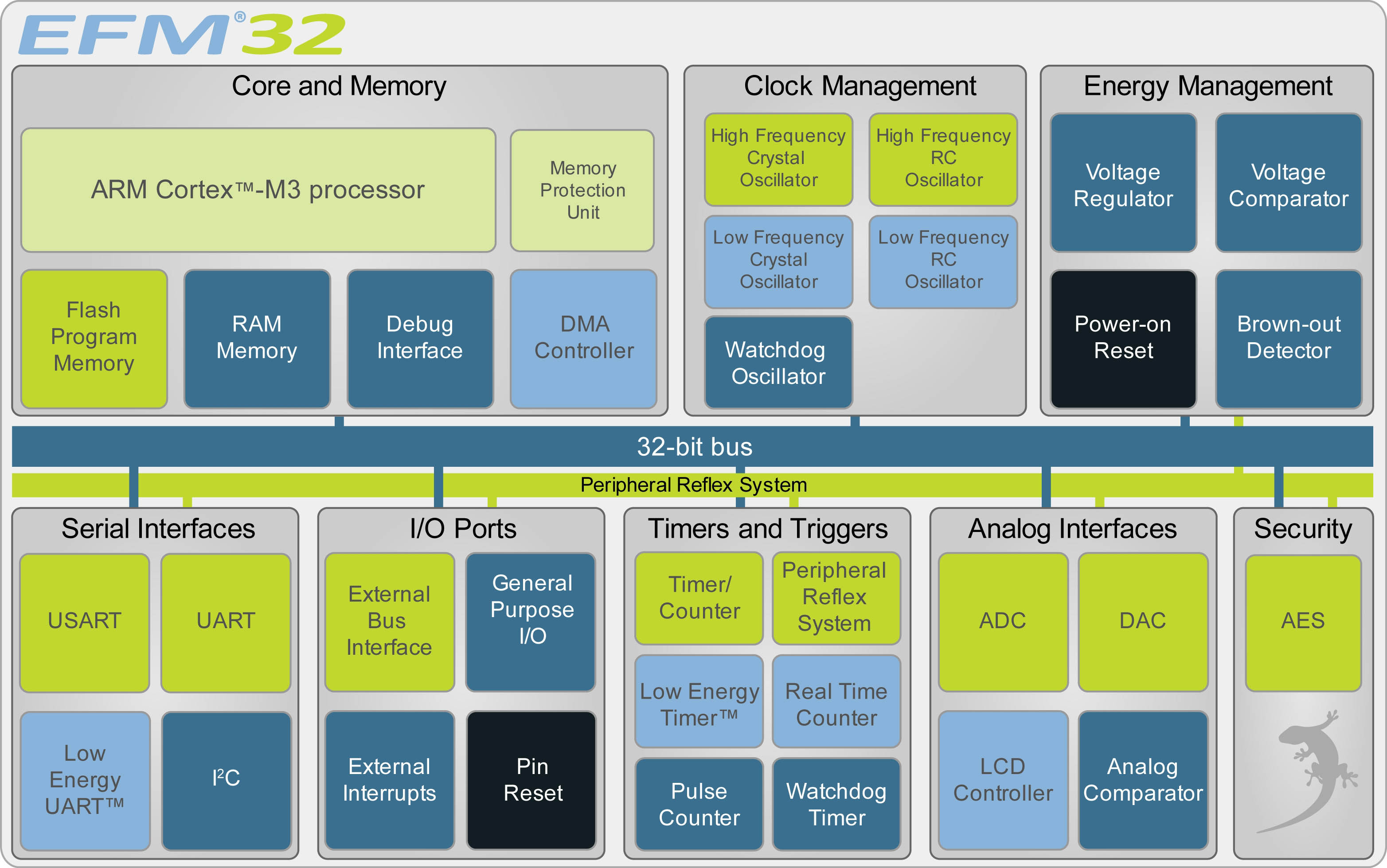 圖2:Energy Micro的ARM ®Cortex™- M3芯片結構是以EFM32 Gecko微控制器為基礎的。