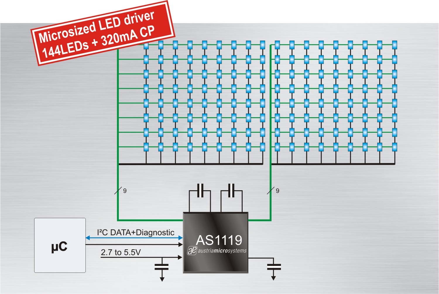 中國(guó)——全球領(lǐng)先的通信、工業(yè)、醫(yī)療和汽車領(lǐng)域模擬集成電路設(shè)計(jì)者及制造商奧地利微電子公司推出最先進(jìn)、最小尺寸(同樣 PCB空間的通道數(shù))的LED點(diǎn)陣驅(qū)動(dòng)器AS1119。