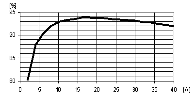 40A的數(shù)字設(shè)計專為大電流作了優(yōu)化,這反映在圖5中15-30A范圍內(nèi)的效率性能曲線上。當(dāng)輸出電流低于10A時,它包括了18A模擬設(shè)計的可用工作范圍的絕大部分,其效率要比模擬POL穩(wěn)壓器略微低一些,這是由于較高的開關(guān)損耗所致。但在半負(fù)載點上(20A),其效率達(dá)到93.7%,比相同輸出電流的模擬設(shè)計提高了2.4%。即便是在40A的滿負(fù)載點上,效率仍達(dá)91.9%,也比相應(yīng)的模擬POL穩(wěn)壓器高0.6%。故在所有關(guān)注的設(shè)計范圍內(nèi),40A數(shù)字設(shè)計的效率也優(yōu)于模擬設(shè)計。改善的原因歸結(jié)于所采用的元器件數(shù)量與20A設(shè)計一樣多。而當(dāng)輸入電壓為9.6V時,40A設(shè)計的效率也能夠再提高1%。