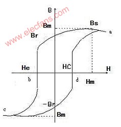節(jié)能燈中,磁環(huán)一般都選用可飽和環(huán)形磁芯,為使節(jié)能燈半橋逆變電路有良好的開關(guān)特性,產(chǎn)生良好的震蕩波形,要求磁環(huán)必須如圖所示,有近似于矩型的磁滯回線,在S形的特性曲線中,以a點為起點,從a點到b點,再到c點和d點,最后回到原始的a點,這樣就得到一個完整的磁化周期.這樣的磁滯回線有明顯的飽和點和飽和段,而且具有良好的對稱性.近似于矩型的磁滯回線可使磁環(huán)線圈中的電流波形前后沿較陡,能較好的滿足三極管的驅(qū)動要求.如果S形的磁滯回線在各點上不能完全對稱的話,都將嚴(yán)重影響節(jié)能燈半橋逆變電路的開關(guān)特性,導(dǎo)致?lián)p耗加大,三極管溫升加劇。