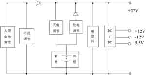 電源分系統(tǒng)由一次和二次電源組成,一次電源母線為全調節(jié)型直流母線系統(tǒng),經調節(jié)的直流母線不論衛(wèi)星進入光照期還是在陰影期,電壓都穩(wěn)定在27V±1V范圍內。