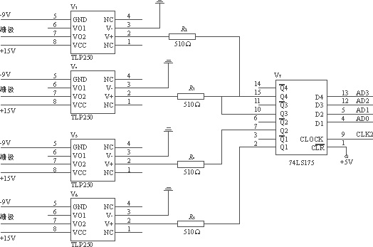 由于在本設(shè)計中,采用單片機作為測量系統(tǒng)的核心,因此,控制電路的核心也采用單片機,為了節(jié)約單片機的IO口,采用一片74LS175作為控制信號的鎖存器。驅(qū)動電路與控制電路的接口電路如圖6所示。