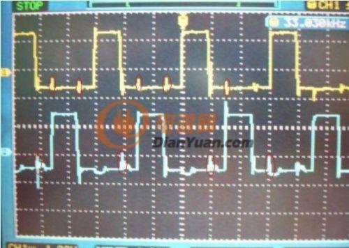 由于大部分逆變器的MOS管驅(qū)動(dòng)部分的供電與主振蕩IC一樣,都為單電源供電(用SG3525輸出直驅(qū)管MOS的也不少見),因此驅(qū)動(dòng)波形以0V~+15V方波為多見,此時(shí)驅(qū)動(dòng)波形如受到干擾(見上圖尖刺部分),如接近達(dá)到MOS管的Vth值,則對(duì)系統(tǒng)的不良影響自不用多說,起碼也會(huì)影響效率與溫升。如采取一般的手段無法有效減低或避免這種干擾時(shí),采用負(fù)壓關(guān)斷也就很有必要了。這個(gè)問題在專業(yè)的量產(chǎn)方案中,應(yīng)引起足夠的重視。