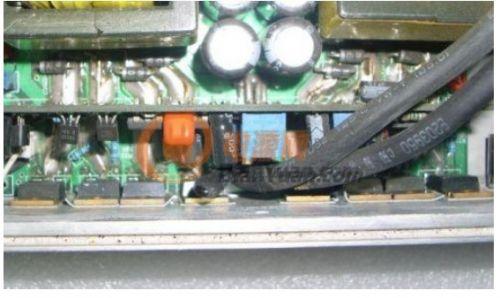 攝氏25度環(huán)境時(shí),輸出滿載1000W,10分鐘后圖片B處(8個(gè)MOS管的中心位置)的溫度比A處高出6~8度!C處(綠圈)最低,比B處低14~15度?。–處為進(jìn)風(fēng)口,D為風(fēng)扇,樣機(jī)為進(jìn)風(fēng)設(shè)計(jì),據(jù)說是用以延長含油軸承的壽命),同樣型號(hào)并聯(lián)工作的功率MOS管,實(shí)際工作的溫差那么大,自然對(duì)“均流”是極其不利!所以可靠性不高就不足為怪了。