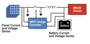 在另一個(gè)實(shí)例中,ST微電子開(kāi)發(fā)了一個(gè)高度集成的HBLED太陽(yáng)能MPPT充電器/驅(qū)動(dòng)器。這個(gè)全集成的方案帶有MPPT優(yōu)化的電池充電器和集成的HBLED驅(qū)動(dòng)器。這個(gè)產(chǎn)品將在2010年晚期發(fā)布,非常適合于HBLED街燈照明應(yīng)用。
