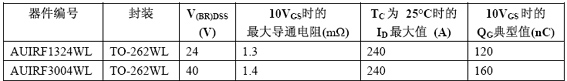 這款新型車用MOSFET系列適合需要低導(dǎo)通電阻(Rds(on))的通用大負(fù)荷/高功率通孔應(yīng)用,內(nèi)燃機(ICE)汽車電動助力轉(zhuǎn)向系統(tǒng)和電池開關(guān),以及各類微型和全混合動力汽車。新器件采用IR先進的硅和封裝技術(shù),在顯著提高性能的同時可與現(xiàn)有的設(shè)計標(biāo)準(zhǔn)相匹配。