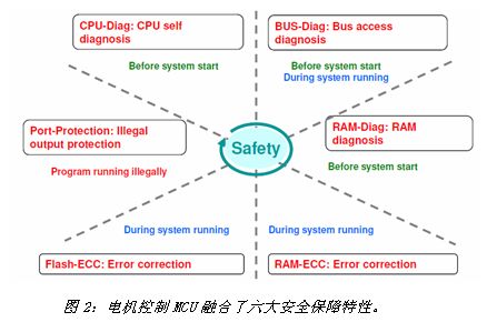 作為新能源汽車的核心部件。電機(jī)控制不僅關(guān)系著整車性能還與行車安全息息相關(guān)。在富士通的電機(jī)控制MCU設(shè)計(jì)中充分考慮了安全特性,通過6大安全機(jī)制來保證系統(tǒng)運(yùn)行的安全可靠,包括:在系統(tǒng)啟動(dòng)前進(jìn)行MCU的自我診斷、總線自診斷、RAM的自診斷;程序非法運(yùn)行時(shí)非法輸出端口保護(hù);系統(tǒng)運(yùn)行期間進(jìn)行總線診斷、RAM錯(cuò)誤糾正、閃存錯(cuò)誤糾正。據(jù)透露,富士通在未來的產(chǎn)品計(jì)劃中,還將增加核心MCU的冗余設(shè)計(jì)(例如雙核或多核)以實(shí)現(xiàn)更強(qiáng)的系統(tǒng)保護(hù)。