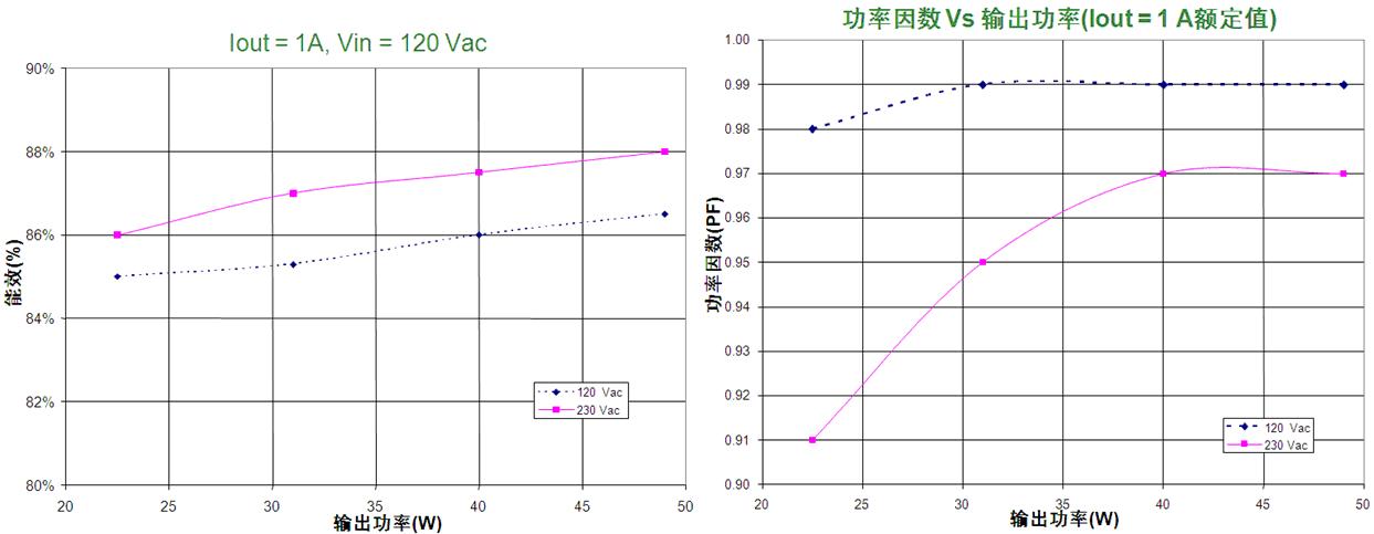 這90 W恒壓恒流演示板接受90至265 Vac的擴展通用輸入電壓(更換元件條件下可支持305 Vac),提供0.7 A至1.5 A的恒定電流輸出范圍(可通過微幅調節(jié)電阻來選擇)及30 V至55 V的恒定輸出電壓范圍(可通過電阻分壓器來選擇),最大輸出功率90 W,支持50至1,000 Hz調光控制,并包含可連接至可選調光卡的6引腳接口,用于模擬電流調節(jié)/雙亮度等級數(shù)字調光等智能調光應用。此外,這演示板還提供短路保護、開路保護、過溫保護、過流保護及過壓保護等豐富保護特性。測試顯示,這演示板在50 W輸出功率、1,000 mA輸出電壓/48 V正向壓降條件的能效高于87%(詳見表1),在50%至100%負載條件下功率因數(shù)高于0.9,同時符合IEC61000-3-2 C類設備諧波含量標準。
