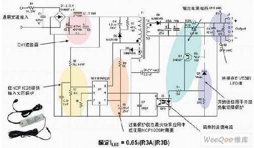 圖1:安森美半導(dǎo)體離線式第二代LED驅(qū)動器NCP1014/1028的應(yīng)用示意圖。