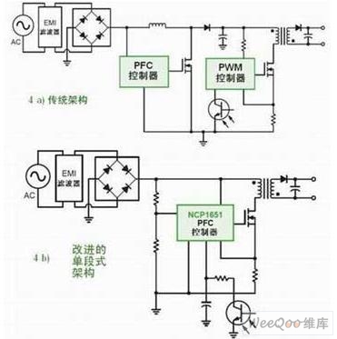 圖2:需要PFC的LED驅(qū)動應(yīng)用中不同架構(gòu)對比。