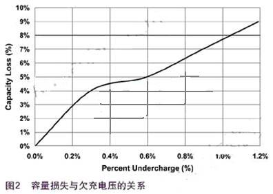 為了盡可能地充分利用電池容量,輸出電壓穩(wěn)壓精度非常關(guān)鍵。輸出電壓精度的小幅度下降也會(huì)導(dǎo)致電池容量的大幅減少。然而出于安全和可靠性方面的考慮,輸出電壓也不能隨意設(shè)置得過(guò)高。圖2顯示出了輸出電壓穩(wěn)定精度的重要性。