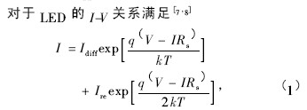 普通LED: I = ( 2. 82993 + 0. 00126V) × 10 -3 . ( 5)