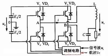 在電壓型逆變電路的PWM控制中,同一相上下兩個橋臂的驅(qū)動信號都是互補的。但由于IGBT的截止時間約為200多納秒,導(dǎo)通時間約為100多納秒,開通速度比關(guān)斷速度快。如果在一個IGBT截止的同時讓此橋臂的另一個IGBT導(dǎo)通,將會出現(xiàn)上下兩個橋臂直通而短路的現(xiàn)象。為了防止發(fā)生這一現(xiàn)象,必須在開通和關(guān)斷信號之間設(shè)置一個死區(qū)時間,因而理想的調(diào)制信號和開關(guān)管輸出的實際信號之間存在偏差。死區(qū)時間的存在導(dǎo)致輸出電壓波形產(chǎn)生畸變,降低了基波幅值,增加了負載的諧波損耗。