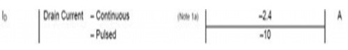 第二步是選擇MOSFET的額定電流。視電路結(jié)構(gòu)而定,該額定電流應(yīng)是負(fù)載在所有情況下能夠承受的最大電流。與電壓的情況相似,設(shè)計(jì)人員必須確保所選的MOSFET能承受這個(gè)額定電流,即使在系統(tǒng)產(chǎn)生尖峰電流時(shí)。兩個(gè)考慮的電流情況是連續(xù)模式和脈沖尖峰。該參數(shù)以FDN304P管DATASHEET為參考,參數(shù)如圖所示: