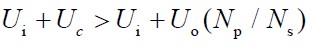 當(dāng)開關(guān)管 Q 關(guān)閉時,初級電感 Lp 中的能量將轉(zhuǎn)移到次級輸出,但漏感Ll 中的能量將不能傳遞到次級,轉(zhuǎn)移到箝位電路的電容Cc ,然后這部分能量被箝位電阻 R c消耗。電容c C上的電壓在開關(guān)管關(guān)斷的一瞬間沖上去,然后一直處于放電狀態(tài)。電容 C c的值應(yīng)取得足夠大以保證其在吸收漏感能量和釋放能量時自身兩端電壓uc( t )紋波足夠小。因此電容Cc 兩端電壓uc( t )為基本為恒定值Uc 。同時電容 Cc 上的電壓不能低于次級到初級的反射電壓Uo × (Np / Ns ),否則開關(guān)管關(guān)斷期間,二極管導(dǎo)通,RCD 箝位電路將成為該變換器的一路負(fù)載。因此開關(guān)管承受的尖峰電壓被箝位為: