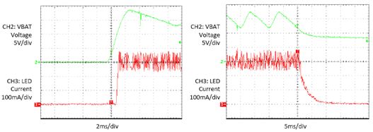 輸出電容C2建議至少為4.7 μF,以減少輸出紋波。較大容量的C2將有效抑制輸出紋波,同時(shí)可提高幾毫安的輸出電流。不過,由于其對(duì)總能效的貢獻(xiàn)微不足道,且人眼無法感知高頻波動(dòng),沒有必要使用大于10 μF的電容。L的值建議為22 μH,以將開關(guān)頻率設(shè)置在約為150 kHz。LED電流范圍為0至350 mA,所以800 mA左右的電感有效額定電流就足夠了。