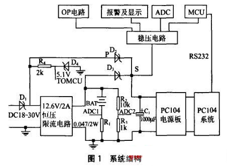 環(huán)境測試儀是指能夠測量溫度、濕度、壓力、風(fēng)速等環(huán)境參數(shù)的儀器。為了滿足各種復(fù)雜地理環(huán)境下的測試需求,測試儀迫切需要小型化和便攜式。為了保持與現(xiàn)有軟件的最大兼容性, 我們選用PC104 的系統(tǒng)架構(gòu)設(shè)計(jì)了便攜式的測試儀。PC104 是IBM PC 兼容工業(yè)標(biāo)準(zhǔn)的架構(gòu)體系。PC104 主板對(duì)電源系統(tǒng)要求較高, 設(shè)計(jì)選用工業(yè)級(jí)的PC104 電源板,此電源板支持寬范圍輸入( DC8~ 36 V) , 效率高達(dá)96 % 。為了滿足便攜性, 系統(tǒng)必須支持電池組供電( 鋰電池組或鉛酸蓄電池組等) , 由于鋰電池組具有單節(jié)電池標(biāo)稱電壓高、自放電率低、質(zhì)量能量密度和體積能量密度高、沒有記憶效應(yīng)等優(yōu)點(diǎn),本系統(tǒng)選用鋰電池組供電。本文主要討論了系統(tǒng)供電電路及電池組充電電路的設(shè)計(jì)。
