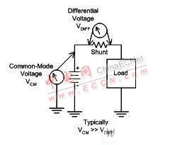 我們還要考慮到另一種共模情況:電源線路的分路開啟,且接地短路的情況。這時共模電壓為零。電流流動時必須進(jìn)行檢測,也就是說,放大器在零共模電壓時也要能正常工作。