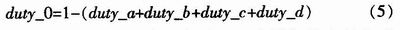 以虛擬整流器、逆變器均工作在第一扇區(qū)為例,相量合成的固定空間電流、電壓相量分別是I6、I1和U6、U1,兩個空間相量的綜合調制采用相互嵌套的辦法來實現。整個輸入相電流和輸出相電壓相量合成共有I6-U6、I6-U1、I1-U6、I1-U1、I0-U0 5種組合。每一相量組合的作用時間用占空比duty來表示。等式(1~5)反映了占空比的計算公式。占空比可以通過表1來分配給相應的開關組合。