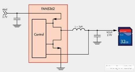 FAN5362經(jīng)過(guò)專門設(shè)計(jì)以處理上述最小過(guò)沖/下沖。此外,F(xiàn)ET的控制機(jī)制和RDS(ON)也經(jīng)過(guò)精心設(shè)計(jì),以確保輸出電壓絕不低于2.7V,甚至包括了線路和負(fù)載瞬態(tài)響應(yīng)。對(duì)存儲(chǔ)器來(lái)說(shuō),這點(diǎn)至關(guān)重要,因?yàn)镾D規(guī)范2.0版要求工作電壓范圍在2.7至3.6V之間。