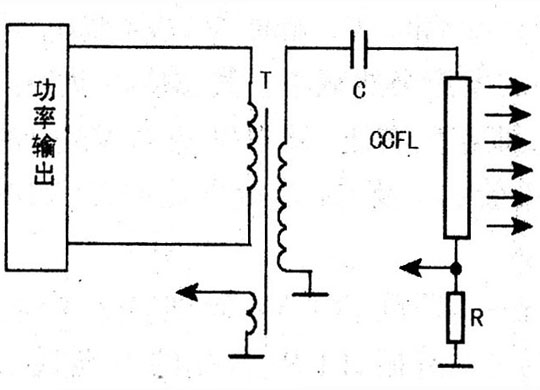 在背光板驅(qū)動(dòng)電路中,前級(jí)(振蕩器和調(diào)制器)和功率輸出部分基本上是工作在開(kāi)關(guān)狀態(tài)(因開(kāi)關(guān)狀態(tài)工作效率高,輸出功率大),輸出信號(hào)基本也是開(kāi)關(guān)信號(hào)。燈管的最佳供電電壓波形應(yīng)是正弦波,為了保證燈管工作在最佳狀態(tài)(對(duì)于發(fā)光亮度及壽命是非常重要的),因此必須把功率輸出級(jí)輸出的方波信號(hào)變換為正弦波,這一過(guò)程簡(jiǎn)稱(chēng)正弦化過(guò)程,其具體處理方式有兩種:一是在高壓變壓器高壓輸出端進(jìn)行處理,二是在高壓變壓器低壓輸入端進(jìn)行處理。目前,大多采用后一方式,而前一種方式多用于早期的背光燈驅(qū)動(dòng)板中,下面分別進(jìn)行介紹。
