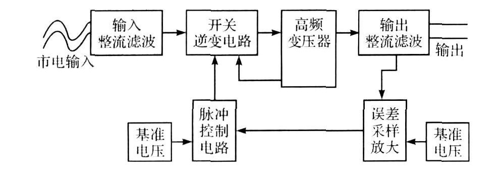 市電經(jīng)過一次整流濾波后變成直流電壓, 送到開關逆變電路。逆變電路將直流變成幾百赫茲到幾千赫茲的高頻矩形波, 高頻矩形波通過高頻變壓器耦合到二次線圈以得到小電壓交流電, 此交流電經(jīng)過二次整流濾波后輸出以驅(qū)動負載。同時, 該輸出經(jīng)過誤差放大電路采樣取得的輸出電壓值又回饋給脈沖控制電路。脈沖控制電路將回饋的電壓值與基準電壓值比對后得出一個脈沖占空比的相應改變動作。在開關動作過程中會產(chǎn)生很強的噪聲, 它們通過電源線以共?;蛘卟钅7绞较蛲鈧鲗?。此外, 開關電源也是一個敏感的器件, 因此由電網(wǎng)侵入的外部噪聲傳遞到內(nèi)部電子電路過程中也會產(chǎn)生干擾。所以在設計一款開關電源之初就應該考慮到電磁干擾。