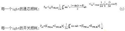 在設(shè)備穩(wěn)態(tài)運行時,功率單元內(nèi)整流二極管、igbt、續(xù)流二極管總的功率損耗即為散熱器的耗散功率。因此熱設(shè)計的第一步就是對上述器件的總功耗進行估算。