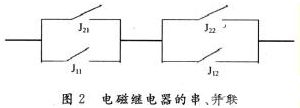 式中:Rt為并聯(lián)后的可靠度;R為每個(gè)繼電器的可靠度。觸點(diǎn)串聯(lián)能夠提高其負(fù)載電壓,提高的倍數(shù)為串聯(lián)觸點(diǎn)的組數(shù)。但使用時(shí)電壓不要高于線圈最大工作電壓,也不要低于額定工作電壓的90%,否則會(huì)危及線圈壽命和使用可靠性,如圖2所示。