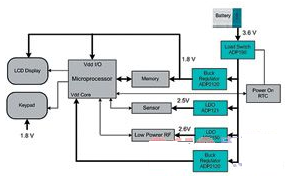 當(dāng)電源電壓比工作電壓高得多時(shí),通過開關(guān)DC/DC轉(zhuǎn)換器能獲得更好的效率,在將一個(gè)直流電壓轉(zhuǎn)換為另一個(gè)直流電壓時(shí),它的能量能暫時(shí)存儲(chǔ)在電感磁場(chǎng),然后釋放給負(fù)載。便攜式開關(guān)調(diào)節(jié)器以500kHz~3MHz的頻率工作。DC/DC開關(guān)轉(zhuǎn)換器有多種拓?fù)浣Y(jié)構(gòu)。內(nèi)置開關(guān)元件的同步降壓型調(diào)節(jié)器用于輸出電壓遠(yuǎn)低于輸入電壓的場(chǎng)合,在便攜式系統(tǒng)中最為常用。用降壓調(diào)節(jié)器替換LDO可以提高系統(tǒng)效率。例如,當(dāng)利用LDO將系統(tǒng)電壓從3.6V降至1.2V,為負(fù)載電流為300 mA的微處理器內(nèi)核供電時(shí),LDO效率約為1.2V/3.6V×100%=33%,67%的輸入功率以熱量形式損失。為了提高效率并降低工作溫度,應(yīng)當(dāng)用ADP2108等降壓轉(zhuǎn)換器取代LDO.降壓轉(zhuǎn)換器能將能量?jī)?chǔ)存在電感的磁場(chǎng)中,因而效率更高。用過使用ADIsimPowerTM設(shè)計(jì)工程師會(huì)發(fā)現(xiàn),在相同條件下ADP2108的效率為80%,比LDO提高47%.然而ADP2108尺寸較小,僅使用兩個(gè)去耦電容和一個(gè)1μH芯片電感,幾乎可以直接取代LDO.,低靜態(tài)電流、使能功能以及負(fù)載電流較小情況下的省電模式,都是選擇變壓轉(zhuǎn)換器的性能指標(biāo)?! ?br />