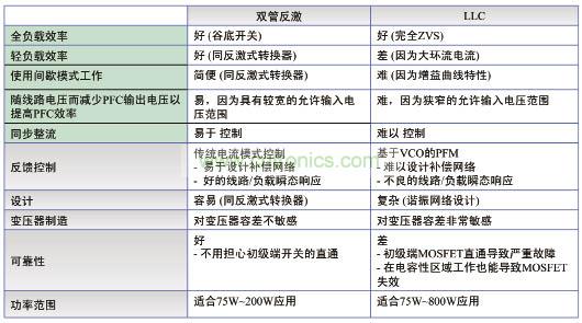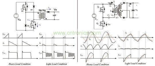 雙管QR反激與LLC諧振轉(zhuǎn)換器如圖4所示,左邊為雙管QR反激,右邊為LLC諧振轉(zhuǎn)換器等特點(diǎn)。