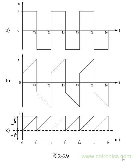 我們從圖2-29-b中可以看出,在輸入電壓作用期間,勵磁電流