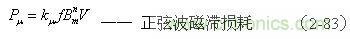 (2-83)式中, 為輸入電壓為正弦波時變壓器鐵芯的磁滯損耗[W]; 為與鐵磁物質(zhì)有關(guān)的系數(shù)(由試驗決定);
