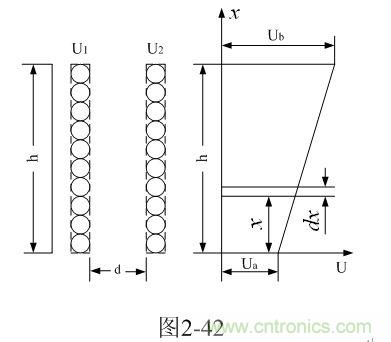 圖2-42是分析計算開關(guān)變壓器線圈之間分布電容的原理圖。