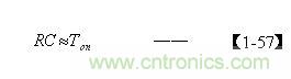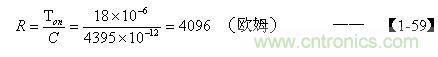 把由【1-52】和(2-73)式求出電容器C的結(jié)果,以及根據(jù)【1-25】式求出的Ton值,代入【1-57】式后即可求出電阻R的值。