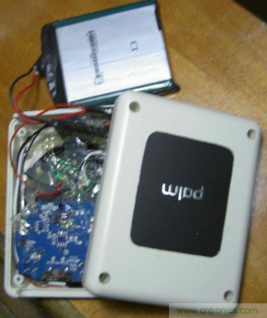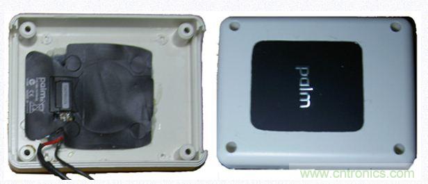 由于點(diǎn)金石表面是有一定凹陷下去的,非常契合palm的后蓋,而這個(gè)凹陷實(shí)在難以加工。另外,點(diǎn)金石里那圈非常細(xì)的線(xiàn)圈也是用膠水粘在外殼上的,比較難取下來(lái)。而且點(diǎn)金石上那個(gè)“plam”的金屬字也比較酷,因此于是我決定將點(diǎn)金石嵌入到移動(dòng)電源中。