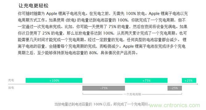 換句話說,不管你充電和放電多少次,只要總的放電電量沒有達(dá)到設(shè)計(jì)容量的100%,就沒有耗費(fèi)一次循環(huán)壽命,只有放電達(dá)到容量的100%才會計(jì)算下一個循環(huán)周期,和充電頻繁與否沒有直接聯(lián)系。