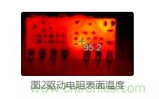 有時,電路參數(shù)和性能看似正常,但實(shí)際上隱藏很大的問題。如圖 2所示,某電路基本性能沒有問題,但在常溫下,用紅外熱成像儀一測,不得了了,MOS管的驅(qū)動電阻表面溫度居然達(dá)到95.2℃。長期工作或高溫環(huán)境下,極易出現(xiàn)電阻燒壞、模塊損壞的問題??梢?,研發(fā)過程中使用熱成像儀測試元器件的溫度尤其重要,可及時發(fā)現(xiàn)并定位問題點(diǎn)。通過調(diào)整電路參數(shù),降低電阻的歐姆熱損耗,且將電阻封裝由0603改成0805,大大降低了表面溫度。