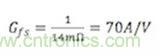 至此我們已經(jīng)完成了大半的電壓調(diào)節(jié)器模塊(VRM)設(shè)計,還需要一次計算來確定基本的VRM特性——跨導(dǎo)。電流模式轉(zhuǎn)換器是最簡單的實現(xiàn)方式,因為它能被表示為跨導(dǎo)方塊。VRM的輸出阻抗與跨導(dǎo)(Gfs)直接相關(guān),關(guān)系式是: