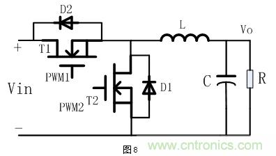 當T2管截止時,T1管與D1、L等器件構成了Buck型降壓電路,可以實現(xiàn)對后級的負載進行供電;反之,當T1管截止,T2管與D2二極管、L等器件構成了Boost升壓電路,對前端電源進行能量補充。目前對T1和T2管的控制以模擬方式控制相對還是比較困難,均是以數(shù)字控制方式為主。