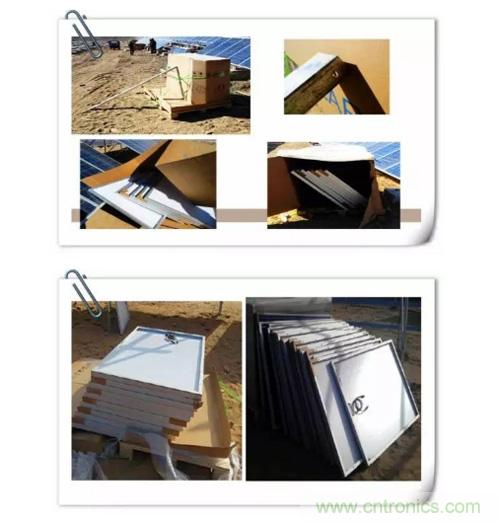 6、組件整箱運(yùn)抵施工位置后,應(yīng)擺放在地勢平坦的場區(qū),避免放在傾斜位置或地勢復(fù)雜的位置。