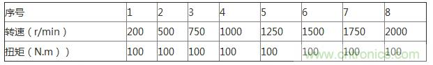 以汽車下坡或者剎車狀態(tài)舉例,我們可以按照下述表格調(diào)整轉(zhuǎn)速和扭矩進行試驗: