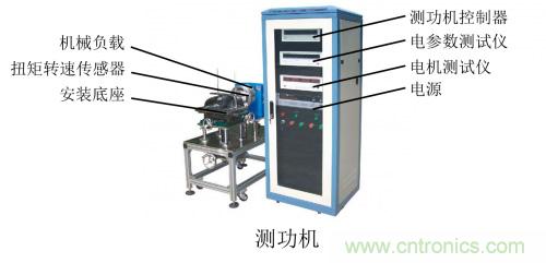 傳感器和制動(dòng)器做成一體的款式。測(cè)試臺(tái)架包括安裝底座、扭矩轉(zhuǎn)速傳感器、機(jī)械負(fù)載(制動(dòng)器),用于電機(jī)試驗(yàn)時(shí)的力矩加載,模擬電機(jī)的不同工況;機(jī)柜包括電參數(shù)測(cè)試儀、電機(jī)測(cè)試儀、測(cè)功機(jī)控制器、電源等,用于對(duì)系統(tǒng)的驅(qū)動(dòng)和對(duì)電機(jī)的測(cè)試。