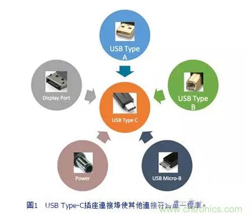 USB Type-C不但能夠減少使用的連接線,還可確保裝置之間順利協(xié)作,為使用者和消費(fèi)者的生活帶來(lái)相當(dāng)大的便利性,但卻也會(huì)為設(shè)計(jì)者和開(kāi)發(fā)人員帶來(lái)麻煩。目前,市面上已有很多類型的USB連接埠和連接線,包括Mini、Micro、Type-A、Type-B等。繁多的種類很容易造成混淆,例如行動(dòng)電話的連接埠與筆記型電腦的連接埠不同,而筆記型電腦的連接埠又和數(shù)位相機(jī)的連接埠不同。USB Type-C 將大部分的連接縮減成單一標(biāo)淮(圖1),可涵蓋所有裝置并提高可用性。USB Type-C可支援多個(gè)通訊協(xié)定,并且可向后相容于USB 2.0。監(jiān)視器、耳機(jī)、充電器以及鍵盤(pán)等幾乎所有配件都能使用USB Type-C與電腦、平板電腦和智慧型手機(jī)等裝置進(jìn)行通訊。