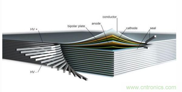 如今,電池儼然成為了決定電動車未來的核心部件,這也不難理解那么多的電池制造商在電池技術(shù)上絞盡腦汁、期望有所重大突破,并且制定各種野心勃勃發(fā)展目標(biāo),例如:將電池系統(tǒng)的能量密度從250Wh/L左右提升到500Wh/L、同時(shí)大幅度降低生產(chǎn)成本。一方面,電池材料需要進(jìn)一步優(yōu)化,提高電池能量密度,另一方面,電池空間體利用需要提高、減小有限空間內(nèi)的非活性材料?,F(xiàn)有的電池封裝package方式造成了大量的體積被非電池活性材料占據(jù),無法充分利用有限的電池空間。為了實(shí)現(xiàn)這個(gè)目標(biāo), IAV公司與 Thyssenkrupp AG和Fraunhofer Institute for Ceramic Technologies and Systems(IKTS)一起合作開發(fā)汽車底盤電池集成項(xiàng)目( EMBATT:chassis-embedded energy),直接將電池嵌入到汽車底盤,大幅度減少電池本身的結(jié)構(gòu)件所占據(jù)的體積,達(dá)到提高能量密度Wh/L的目標(biāo)。EMBATT概念的中心思想是采用雙極性bipolar鋰離子電池。在這個(gè)合作開發(fā)項(xiàng)目中,IAV主要負(fù)責(zé)車輛開發(fā),包括車輛概念、測量安全、電池布局和設(shè)計(jì)、控制軟件標(biāo)定。IKTS主要負(fù)責(zé)定制化電池材料和電極的制造加工技術(shù)。Thyssenkrupp AG主要負(fù)責(zé)后期的電池生產(chǎn)。