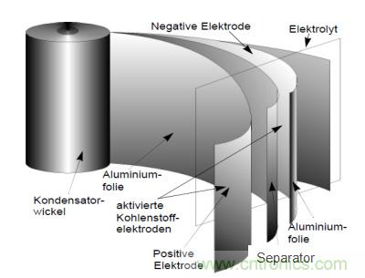 超級(jí)電容的能量?jī)?chǔ)存在雙層電解質(zhì),即赫爾姆霍爾茨層中進(jìn)行。此類電容器極大的容量一方面是基于赫爾姆霍爾茨層厚度薄的特性,其厚度僅為數(shù)微米(1微米=10-10 米),另一方面是由于采用了表面面積極大的電極材料。這里原則上建議以下三種合適的材料: