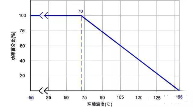 而最大工作電壓是在額定功率下,該電阻可以承受的最大電壓。但是要注意!看下面這個圖。可以看出額定功率是在最高環(huán)境溫度70度的條件下標(biāo)注的(不同廠家,系列可能有微小區(qū)別,在設(shè)計之初和問題查找的時候應(yīng)該核實清楚。)